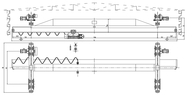 本產(chǎn)品為一般用途起重機(jī),多用于機(jī)械制造裝配、倉庫、山洞等場所。起重機(jī)主要由橋架(金屬結(jié)構(gòu))、電動(dòng)葫蘆、運(yùn)行結(jié)構(gòu)、電氣設(shè)備等四部分組成。